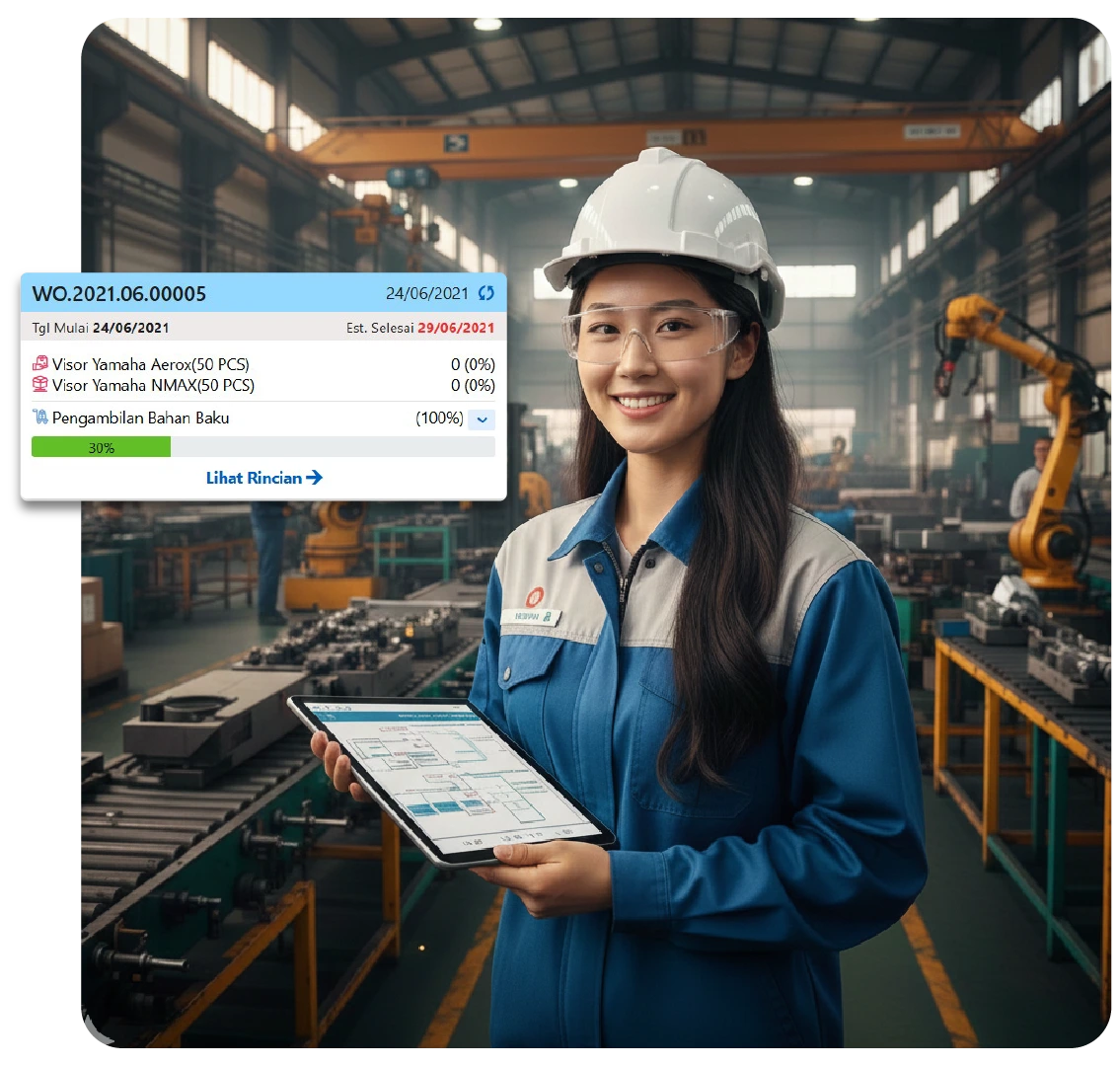 Perusahaan produksi sangat menginginkan kerja yang efisien dan kemudahan dalam memantau alur produksi. Fitur Add on Manufaktur solusi bagi Anda yang menginginkan agar perusahaan berjalan dengan lebih efisien dan lebih maksimal.