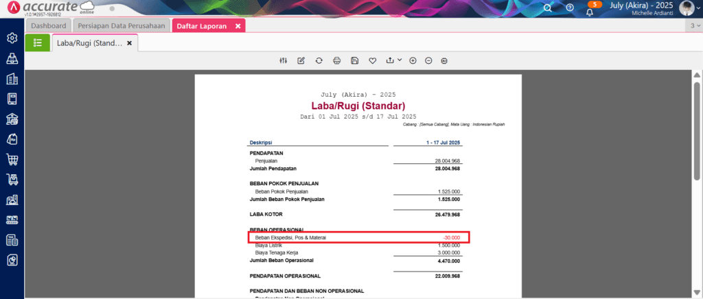 Berikut cara cetak merah nilai minus pada laporan di Accurate Online, misal pada laporan Laba/Rugi (Standar):