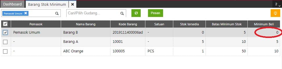 Cara Membuat Pesanan Pembelian atas Barang di bawah Stok Minimum