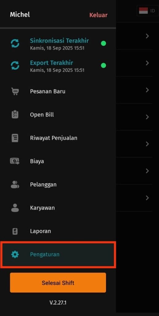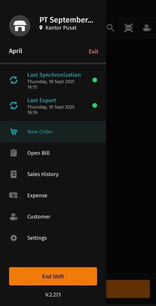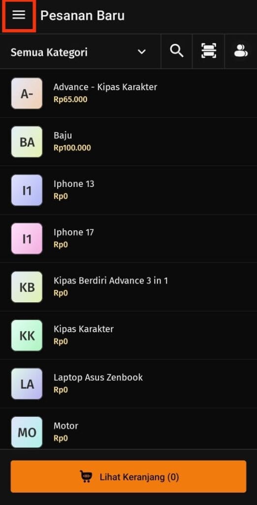 1. Buka aplikasi Accurate POS, lalu klik tombol garis tiga di samping informasi Pesanan Baru.