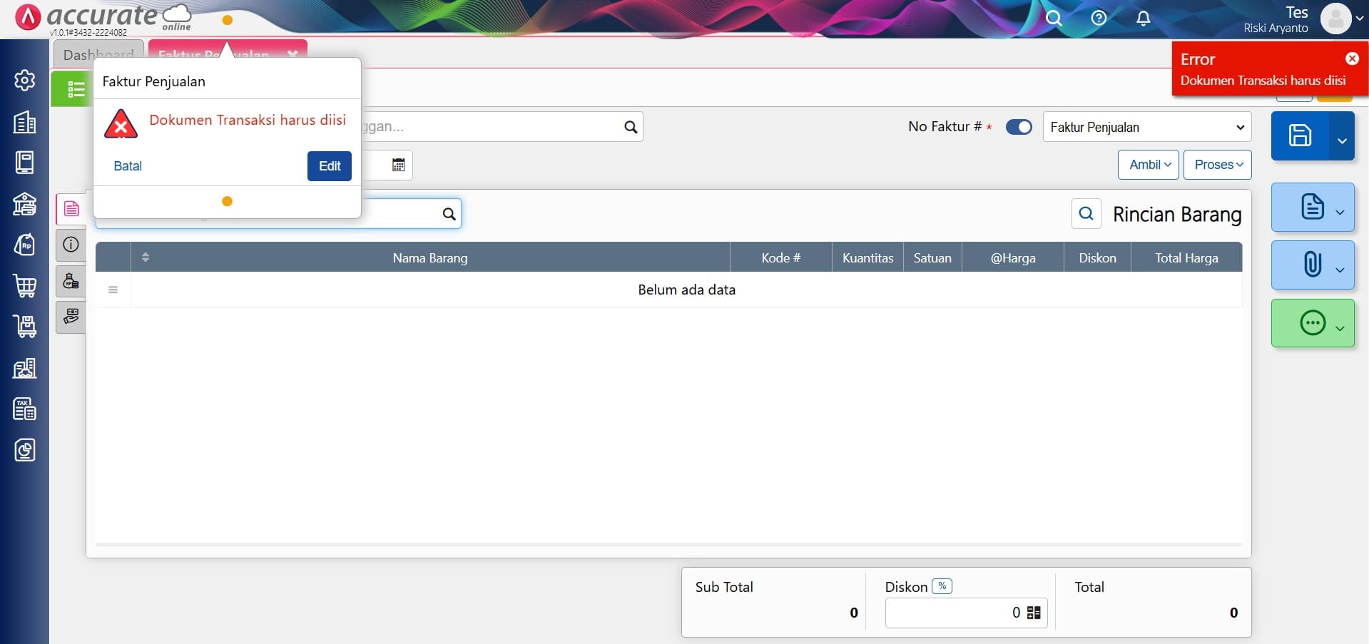 Ilustrasi : perusahaan ingin melakukan pembatasan untuk mewajibkan pengguna melampirkan dokumen saat membuat transaksi, misalnya pada Faktur Penjualan. Jika tidak melampirkan dokumen, maka transaksi tersebut tidak bisa disimpan atau diajukan.